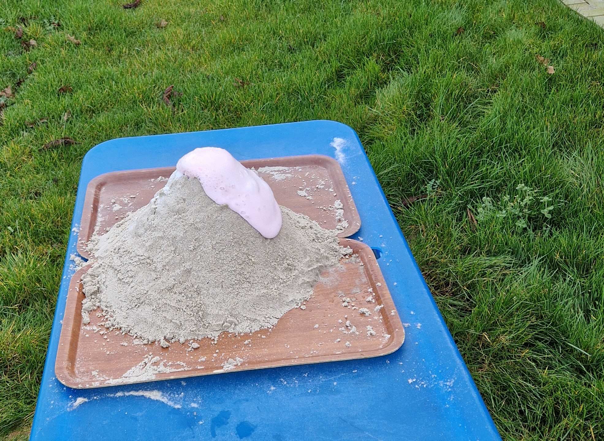 Op het einde van het thema lieten de juffen een vulkaan uitbarsten! We tekenden ook samen met de uiltjesklas en de vlinderklas.